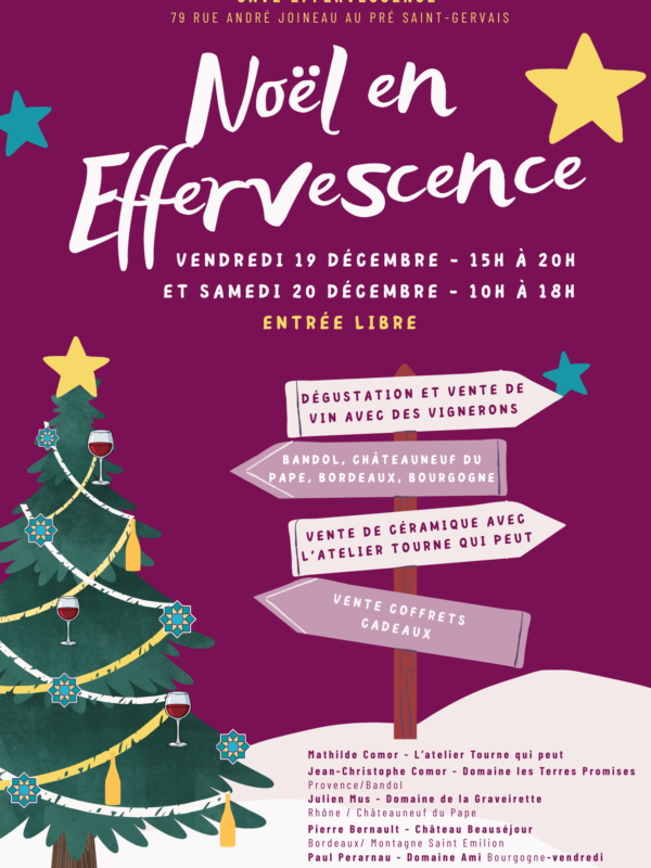 Nous vous attendons les 19 et 20 décembre à la cave effervescence ! 79 rue André Joineau Pré Saint-Gervais Avec la participation de...